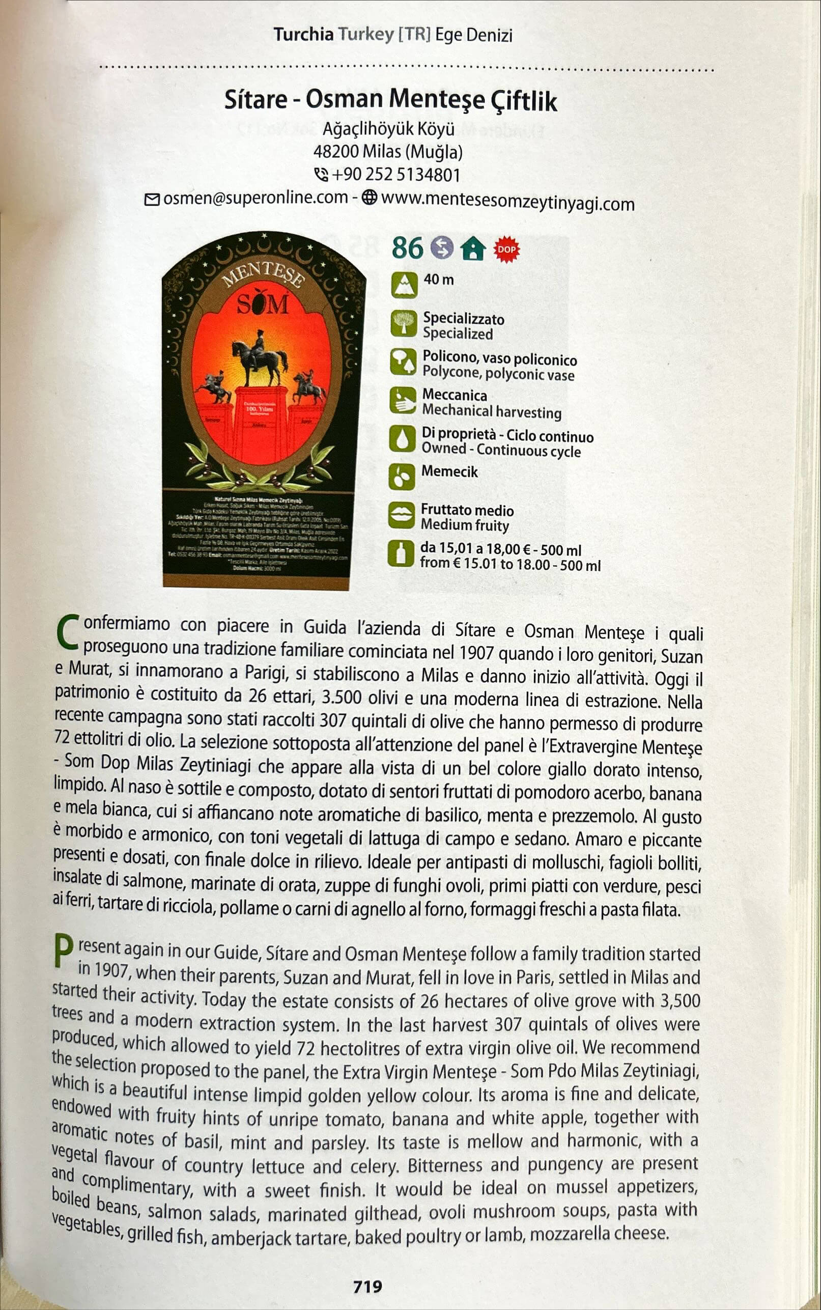 Ali Osman Menteşe, Milas Memecik zeytinlerinden