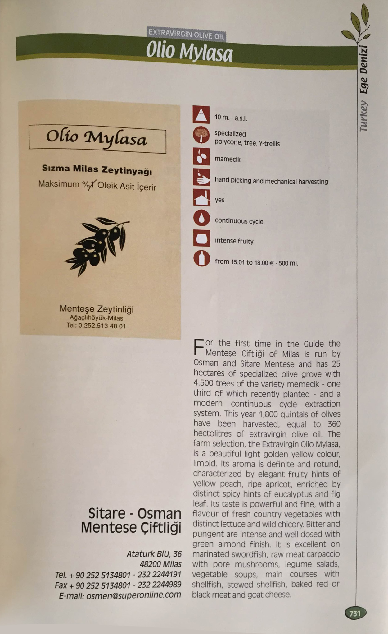 2007 L' Extravergine- A Guide to the best certified quality olive oil in the world- Edited by Marco Orregia-( İtalyada yayınlanan dünyanın en iyi belegelendirilmiş zeytinyağları kataloğu 2007 yılı sayısı)
