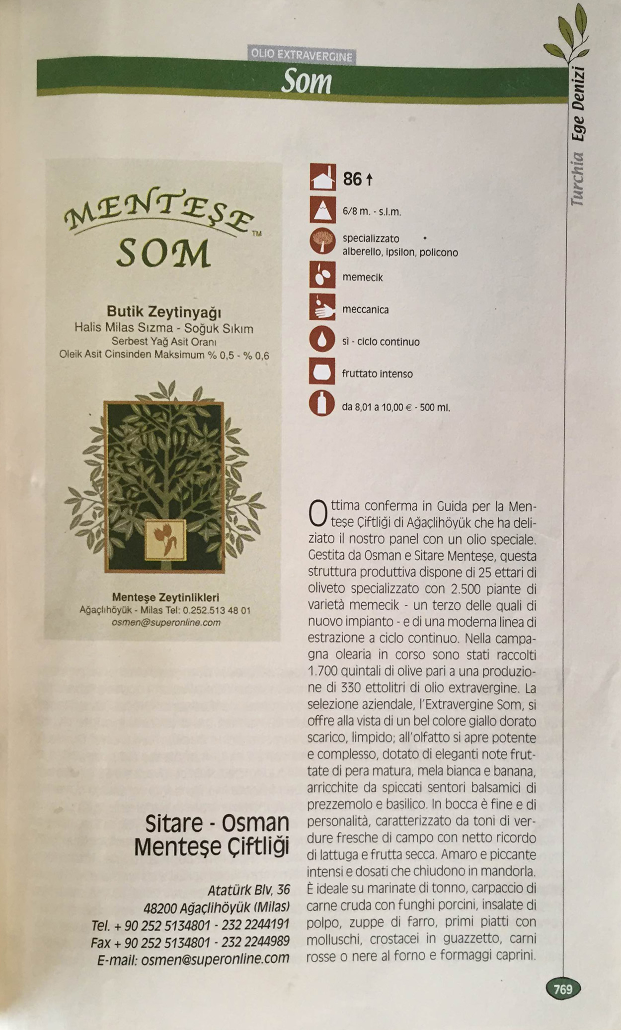 2008 L' Extravergine- A Guide to the best certified quality olive oil in the world- Edited by Marco Orregia-( İtalyada yayınlanan dünyanın en iyi belegelendirilmiş zeytinyağları kataloğu 2008 yılı sayısı)